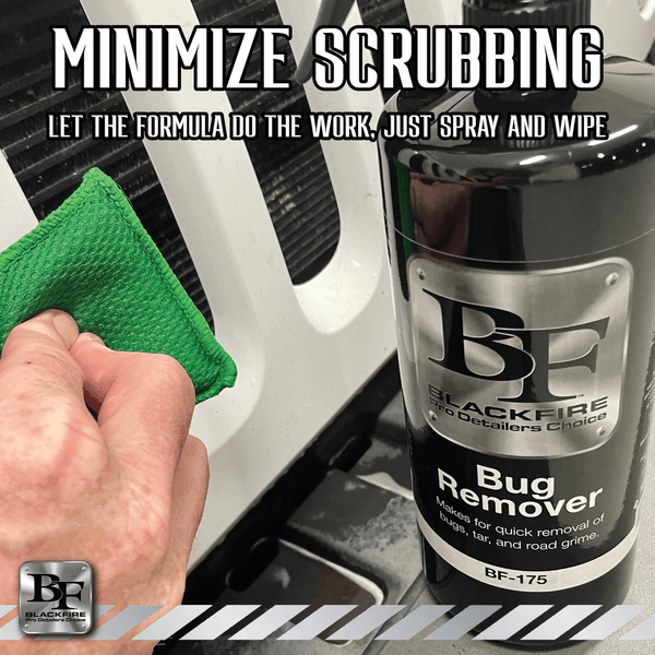 BLACKFIRE Bug Remover safely removes dried on insect bodies and remains from even the dirtiest paint! |