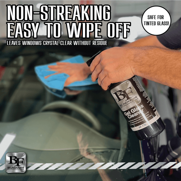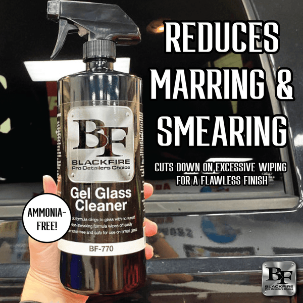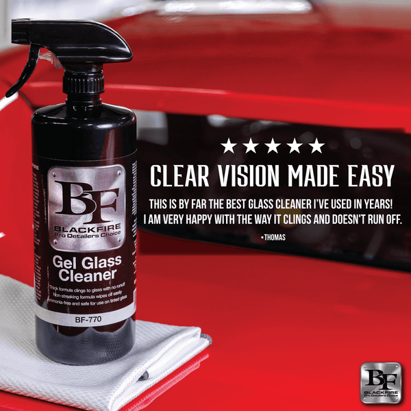 Your windows are an important aspect to your vehicles, after all, it is what allows you to see. But not all glass cleaners are created equal. The perfect glass clear goes on thick to remove contaminants but comes off easy without streaking. That perfect glass cleaner is BLACKFIRE Gel Glass Cleaner.