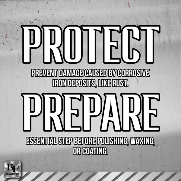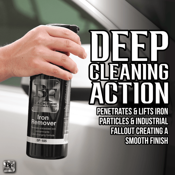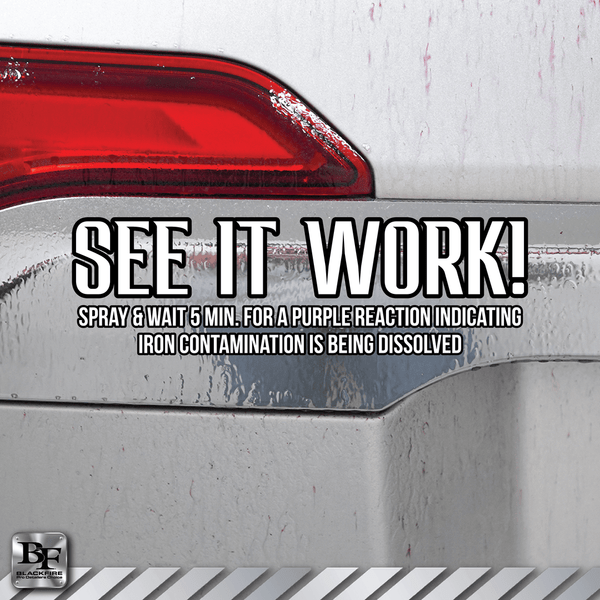 It's important to remove all of these iron particles from your paint to avoid any future damage. The easiest way to do that? BLACKFIRE Iron Remover! This fast-acting, color-changing formula that works to dissolve and remove embedded ferrous iron contaminants in your paint for an advanced clean. BLACKFIRE Iron Remover chemically bonds with iron contaminants in your paint and will remove them from the surface safely and efficiently.