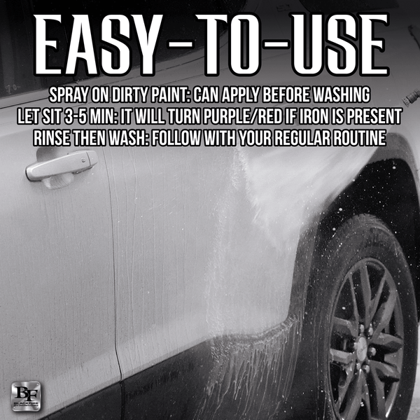 1. BLACKFIRE Iron Remover can be applied to dirty paint before washing the car.