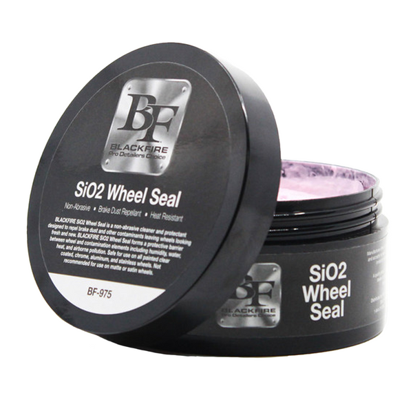BLACKFIRE SiO2 Wheel Seal offers heavy-duty protection against brake dust, tree sap, tar, road salt, and road grime, preserving wheel finishes from corrosion. Its non-abrasive formula ensures compatibility with various wheel types, while its restorative properties help fill in existing damage like pitting and corrosion, restoring the wheels' appearance. With long-lasting silica protection, it forms a durable barrier, surpassing other sealants in longevity and quality of defense. Keep your wheels looking new for years to come with BLACKFIRE SiO2 Wheel Seal.