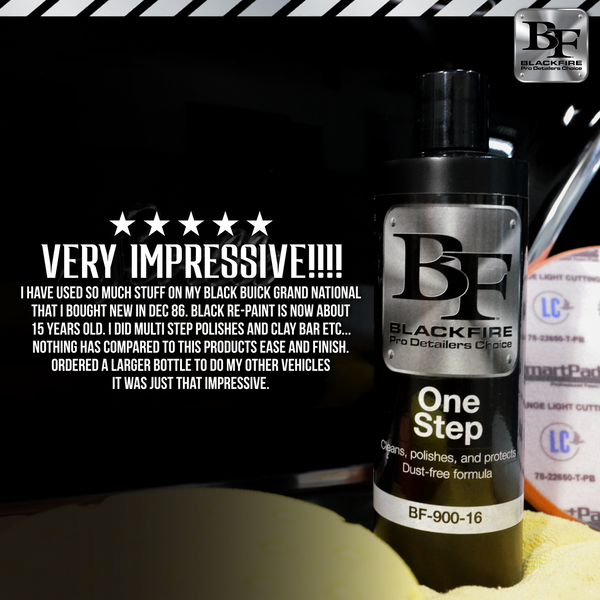 BLACKFIRE One Step is low-dusting, easy to remove and can be applied by machine or by hand. Having perfect paint doesn't have to be difficult to achieve; use BLACKFIRE One Step to remove swirls and imperfections, polishing to a high shine and protect against the elements - all in just one step!