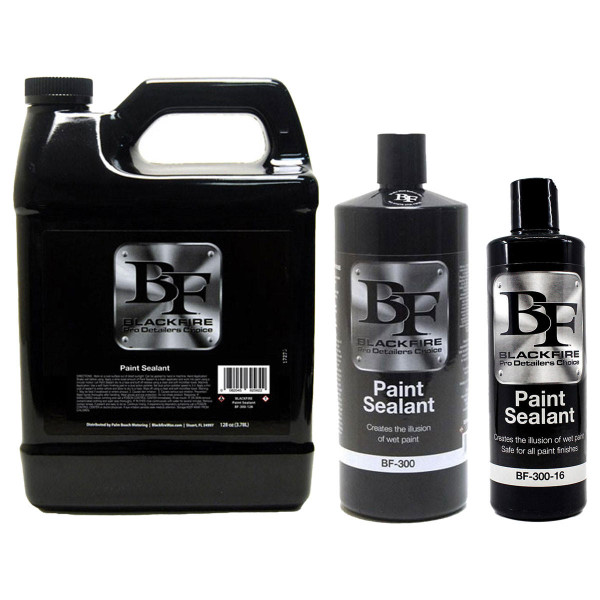 BLACKFIRE Paint Sealant is a sophisticated oil-in-water emulsion is safe for all finishes, with or without a clear coat. This emulsion contains a small amount of a very refined mineral spirit in a water base. Multiple coats can be layered to deepen the gloss without drying or weakening the paint.