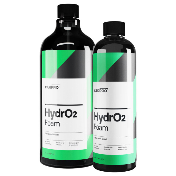CARPRO HydrO2 Foam, or HydroFoam, is for anyone who is short on time but still wants their car to have an impressive finish. This 2-in-1 car foam shampoo will have a vehicle shining in minutes. Spray pH-neutral HydroFoam on with a foam cannon or apply it by hand to gently lift dirt and debris off your paint. When you rinse it off, the glass fibers and fluoropolymers of Hydro2 kick in, creating a water-repellent finish with a glossy shine. This protective coating lasts up to three months depending on driving conditions.