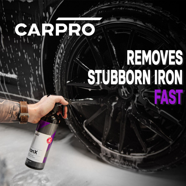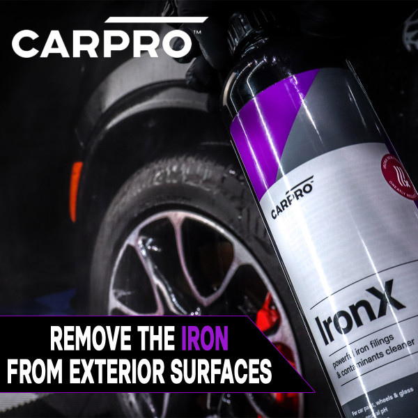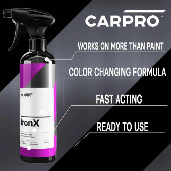 Iron X by CARPRO is an acid-free, pH-balanced iron remover that decontaminates auto paint and wheels. Iron X prevents the spread of iron-related damage to protect your vehicle from paint system failure. Your vehicle constantly faces unseen threats. Remove them with Iron X!
