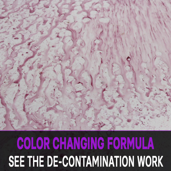 - Wait 5 min. while contaminants change its color to purple/red. Wipe off with damp soft sponge. Don't let the IronX dry completely on surface!