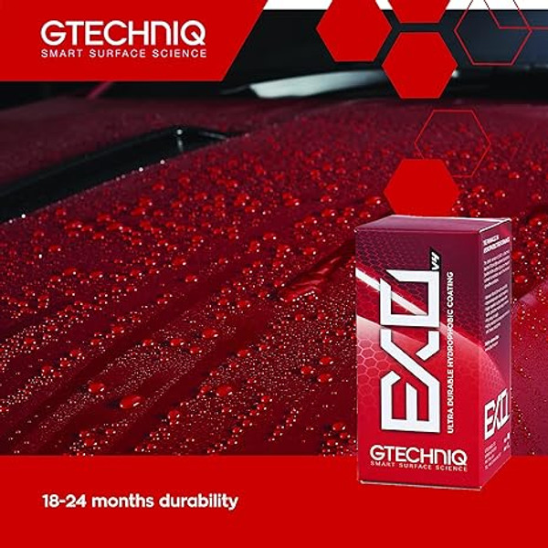 Once you’ve completed the Crystal Serum Light, you can immediately apply GTechniq EXOv5. This coating has been shown to still create water beading even after 600 washes — you could scrub your car once a week for over 10 years and EXOv5 will still repel water! It also protects against UV rays, dirt and scratches.