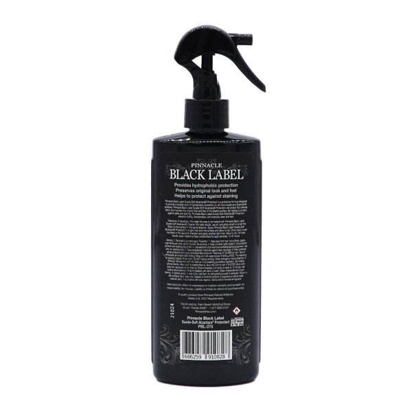 Pinnacle Black Label Suede-Soft Alcantara Protectant a protective formula designed provided a durable layer or hydrophobic protection on your micro-suede and Alcantara surfaces. Pinnacle Black Label Suede-Soft Alcantara Protectant will protect against the damages caused by spills and stain, while still protecting the original look and feel of the luxurious surface. Plus, Pinnacle Black Label Suede-Soft Alcantara Protectant is easy-to-use.