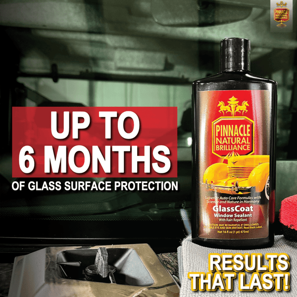 Every time you use your windshield wipers, any dirt accumulated on the wiper blades and windshield is subsequently dragged across the windshield. This causes abrasive friction that will, over time, decrease the effectiveness of any glass coating. The simple solution to this problem is to re-apply Pinnacle GlassCoat Window Sealant with Rain Repellent on a regular basis. Those who frequently travel or live in areas where it rains regularly should apply Pinnacle GlassCoat Window Sealant with Rain Repellent monthly. Those who drive less frequently or live in drier climates should apply Pinnacle GlassCoat Window Sealant with Rain Repellent every 3-6 months.