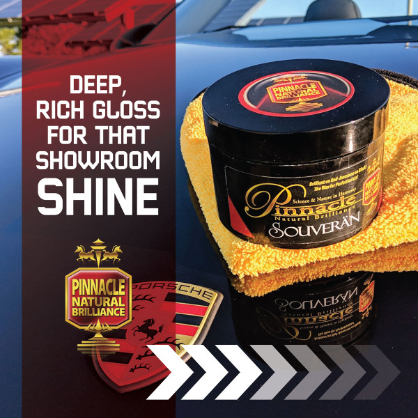 Pinnacle Souveran Carnauba Paste Wax is the wax for perfectionists, so named for its dazzling, 3-dimensional depth and unmatched brilliance. Formulated with premium grade carnauba, nature's finest wax, Souveran is designed to exceed the standards of the most discriminating enthusiast and collector. In fact, this wax is responsible for the dramatic shines on winning show cars at major concours events, time and time again. Today, Souveran still reigns as the ultimate show car wax.