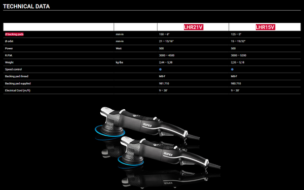 The RUPES BigFoot LHR21 Mark V polisher represents a real breakthrough in the professional polishing industry. This polisher features a 150 mm backing pad and a 21 mm orbit and stands out for a series of technical innovations aimed at improving performance and comfort, offering more precise and efficient polishing.