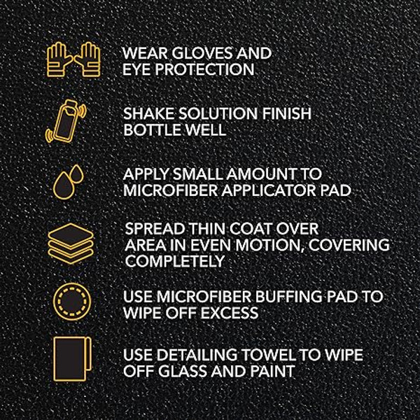 - Use a clean microfiber sponge or foam pad to buff off excess and wipe off glass and paint (will stain unsealed paint).