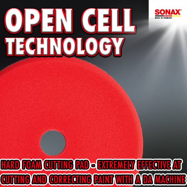 Use the SONAX Red Foam Cutting Pad as a strong abrasive pad on heavily swirled and scratched paint. The thick, dense foam absorbs the perfect amount of product to keep you moving through your paint correction process without absorbing too much and causing over saturation. The white hook & loop backing is firmly secured to the foam face, and will not rip or tear during use. Use the SONAX Red Hard Cutting/Polishing Pad with SONAX CutMax Cutting Compound or as the first step to flawless paint.