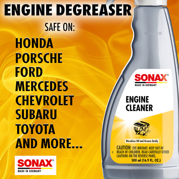 SONAX Engine Cleaner is Germany's take on engine cleaning and degreasing! SONAX Engine Cleaner quickly dissolves and removes oil and grease from engines, machines, assembly parts, and tools! SONAX Engine Cleaner is based around a formula that is phosphate and solvent free, making it one of the safest engine cleaners and degreasers available.