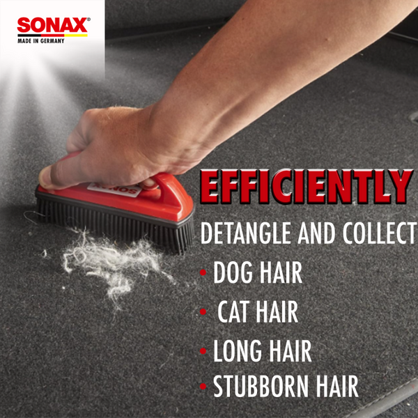 One of the most stubborn messes that can exist inside your car is pet hair. It manages to coat every surface of your car's interior and grow roots. Even a vacuum can't fully eradicate the furry plague that is pet hair. Thankfully the people at SONAX have come up with an incredible tool that finally puts an end to this endlessly infuriating problem. The SONAX Pet Hair Brush ticks every check mark that an effective pet hair removal brush needs to check, and even some it doesn't!