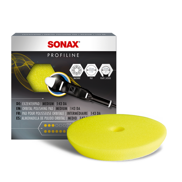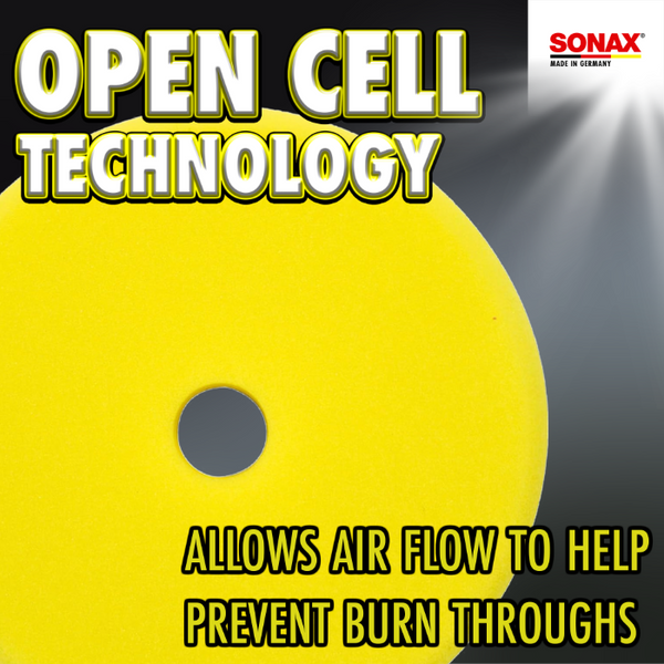 The SONAX Yellow Dual Action Polishing Pad is used to finely perfect the paint after compounding, or if your paint just needs a medium polish. The hole in the center of the pad provides good ventilation while in use and prevents both your pad and the backing plate from overheating. The white hook & loop backing is firmly secured to the foam face, and will not rip or tear during use. Use the SONAX Yellow Dual Action Polishing Pad with SONAX Perfect Finish to achieve a clear, shining finish. SONAX Yellow Dual Action Polishing Pad measures 5.5 inches and can be used with a 5 inch backing plate.