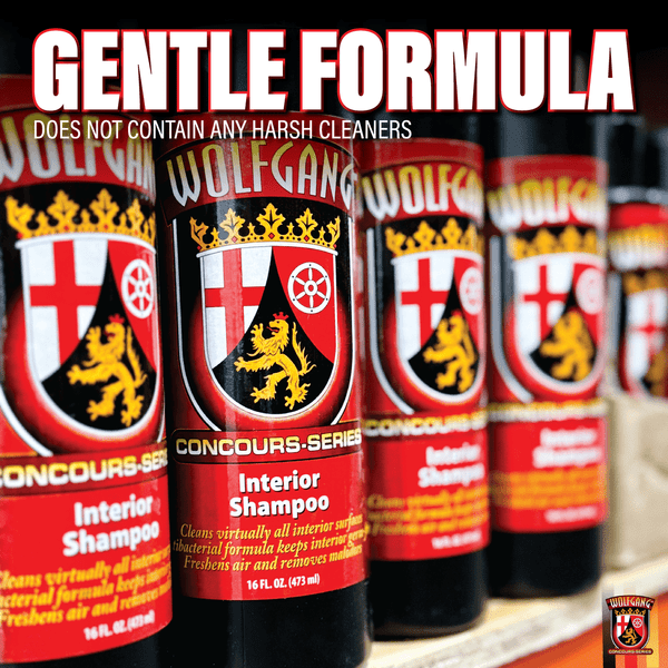 Wolfgang Interior Shampoo is an excellently formulated interior cleaner designed to remove contaminants from virtually all interior surfaces. Feel extra safe from potential viruses with Wolfgang Interior Shampoo's defense against germs because of its antibacterial ingredients. Wolfgang Interior Shampoo also cleanses the air, removing odor causing bacteria. Wolfgang Interior Shampoo does not contain any harsh cleaners and will not cause any harmful side effects.