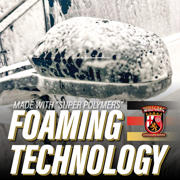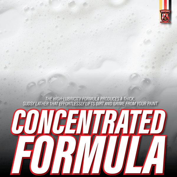 The secret behind Wolfgang Auto Bathe's awesome cleansing power is in the suds. TUFF SUDS II is a foaming technology that works by suspending natural oils and what we've dubbed "super polymers" within the foam, allowing built-up dirt and grime to be effortlessly swiped away. The natural oils act as lubricants, encapsulating each dirt particle, reducing the chances of washing swirls. Gritty and abrasive residue is rinsed away without scratching the paint.
