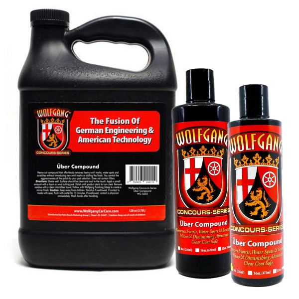 Where does Wolfgang Uber Compound fit into the Wolfgang line? Uber Compound is the most aggressive polishing compound made by Wolfgang. Uber Compound is designed to remove imperfections that are too severe for Total Swirl Remover, Wolfgang's heavy-cut polish. To create a shine worthy of a show car, you should always follow up either polish with Wolfgang Finishing Glaze, an ultra fine polish.