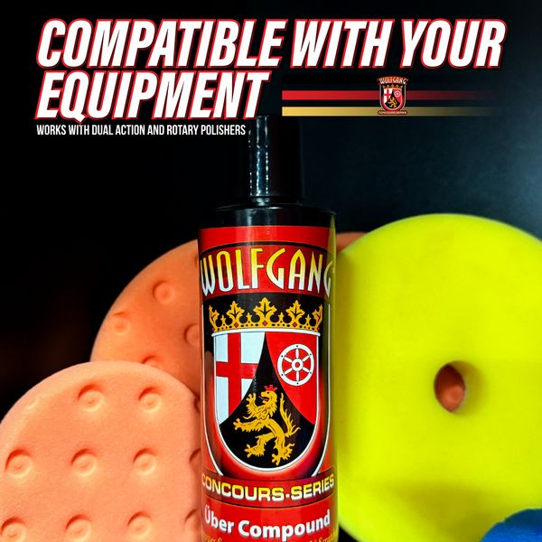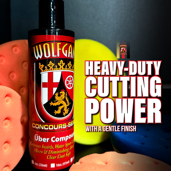 Every professional detailer and gloss-crazed car care enthusiast knows that a compound is defined by its abrasive technology. While most compounds utilize diminishing abrasives that break down, or micro abrasives that continue to cut as long as you work the polish, Wolfgang Uber Compound features both. By combining the milling process pioneered in Germany with Wolfgang's proprietary micro and diminishing abrasives, Uber Cut Compound is safe and effective on all paint systems, factory or aftermarket, with any type of tool or pad combination, including dual action and rotary polishers equipped with foam, wool, or microfiber pads. Wolfgang Uber Compound is the most versatile compound available - period!