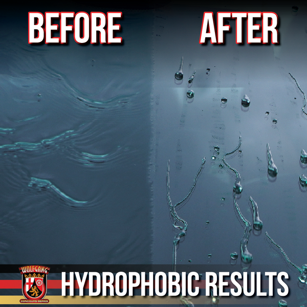 Once you have applied Wolfgang Uber Glass Coating to your windshield or glass, you will immediately notice the slickness of your glass! This slickness is just one aspect of the incredibly hydrophobic (water fearing) protection of Wolfgang Uber Glass Coating! This hydrophobic protection prevents water, dirt, dust, and other contamination from adhering to your glass. This means that water will bead up and roll off instead of hanging on and interfering with your view! In fact, while you are driving in the rain, you will notice the rain drop hitting your windshield and immediately flying off! Wolfgang Uber Glass Coating is so effective, you may never need to use your windshield wipers ever again!