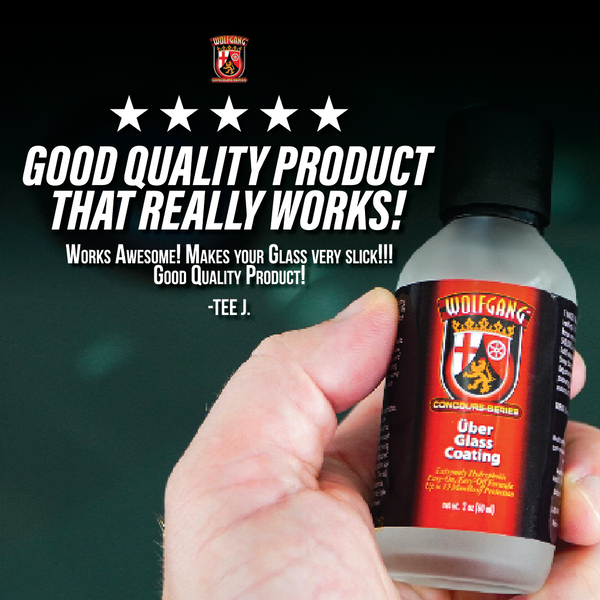 Wolfgang Uber Glass Coating is an innovative ceramic glass coating that strikes the perfect balance between product performance and ease of use! Unlike most coatings on the market, Wolfgang Uber Glass Coating is much more forgiving when it comes to application! Wolfgang Uber Glass Coating has a more generous flash time (the time between when you wipe the product on and when it needs to be wiped off), so you don't have to worry nearly as much about your timing while applying it! Even if you were to leave it on for a few minutes, it would still be easy to buff off! Plus, Wolfgang Uber Glass Coating doesn't require any curing time like other coatings! You can take your car for a drive as soon as you are done applying!