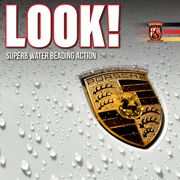 Wolfgang Uber SiO2 Silica Spray uses silica dioxide (most commonly found in nature as quartz) to provide a rock-hard layer of protection on your paint. This level of protection creates an extremely high surface tension which, in turn, makes the surface almost waterproof. Instead of pooling on the surface, Wolfgang Uber SiO2 Silica Spray makes the water (and other surface contaminants) roll right off!